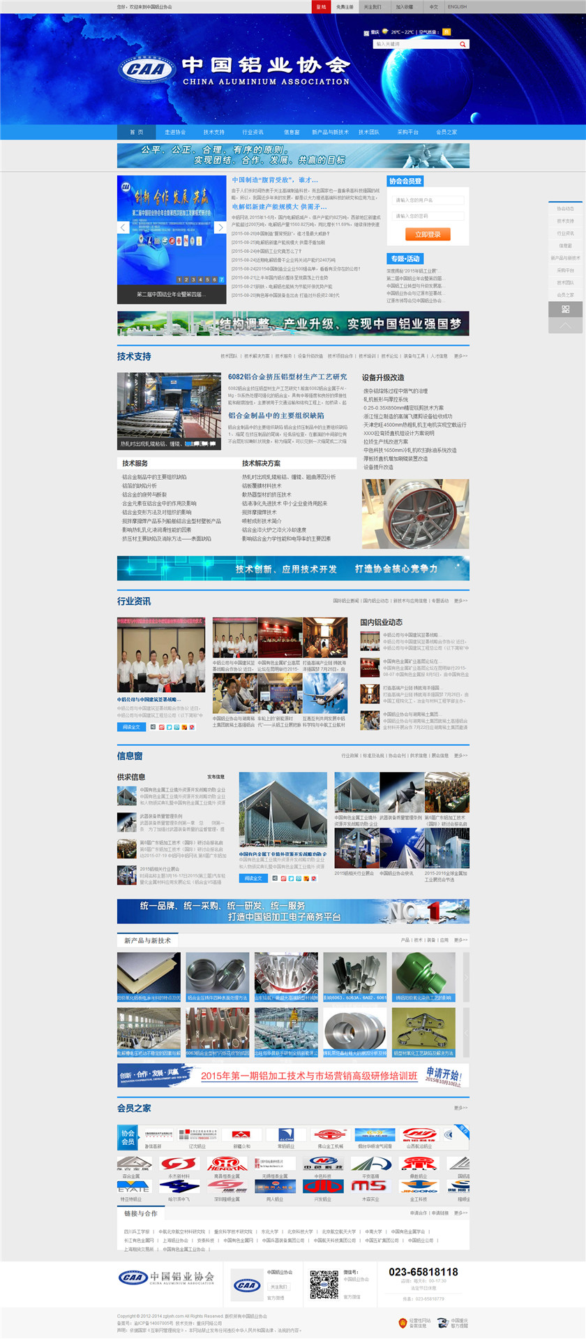 Project Description 中国铝业协会是由中国国内主要从事铝合金铸造、板、带、箔、管、棒、型材、锻件等企业组成的行业协会组织,协会由国内具有一定规模和影响力的企业发起,已有三百多家会员企业,目前还有很多企业踊跃希望加入,协会现有会员企业年销售额1000多亿元人民币,协会会员企业分布在国内华东、华南、西南、环渤海、东北、胶东半岛等中国经济活跃地区;产品涵盖航空航天、兵器装... Official website address 锦州http://www.caa2014.com I want to share