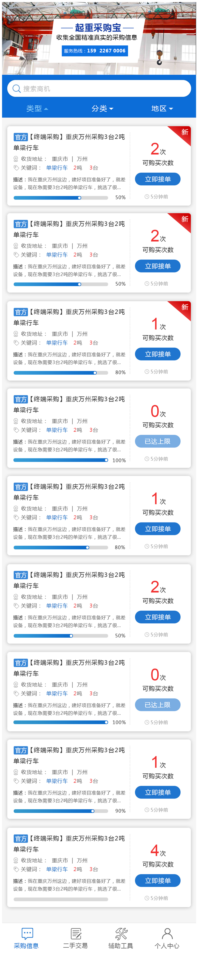 Project Description 欢迎您关注起重采购宝,我们每天为您实时推送全国各地真实有效的起重设备采购信息,让您直接面对终端采购客户,起重采购宝助您生意更上一层楼! Official website address 锦州# I want to share